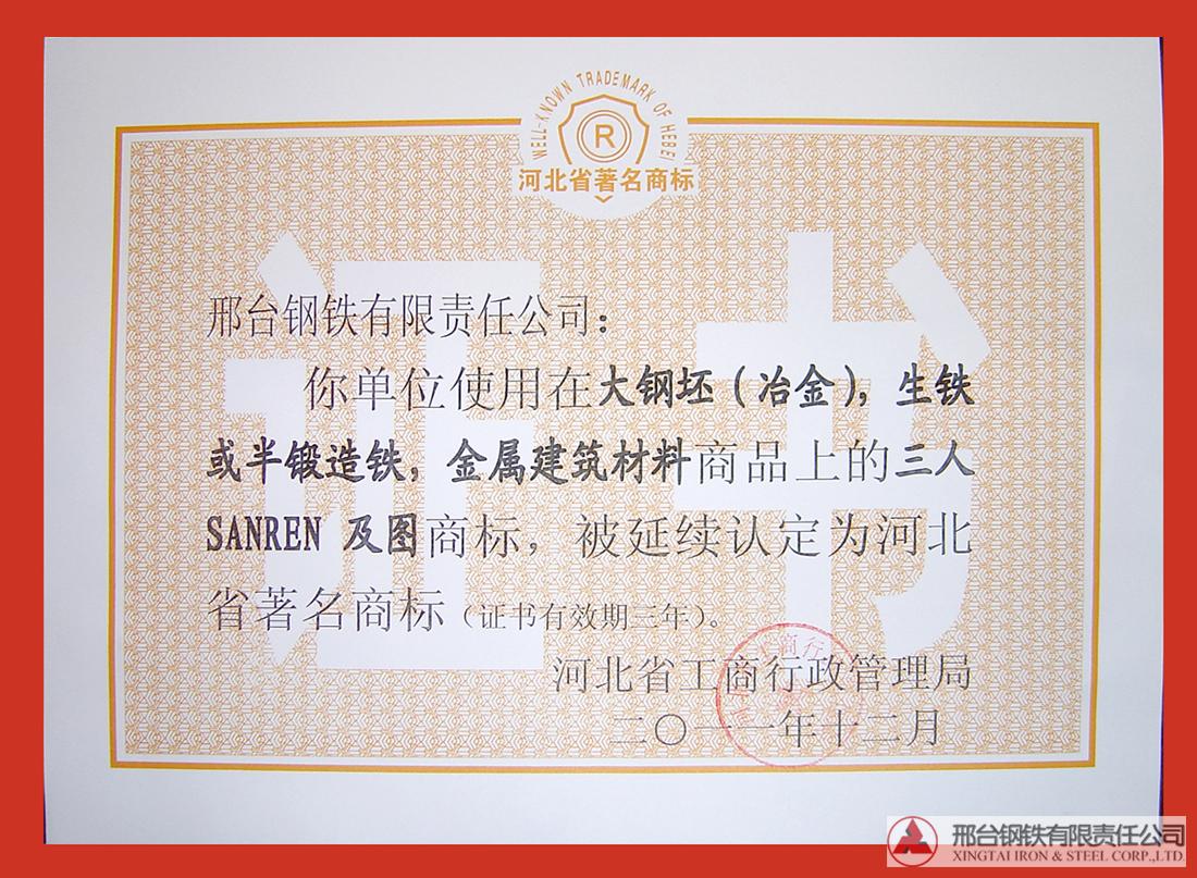 “三人”注冊商標(biāo)被延續(xù)認(rèn)定為河北省著名商標(biāo)