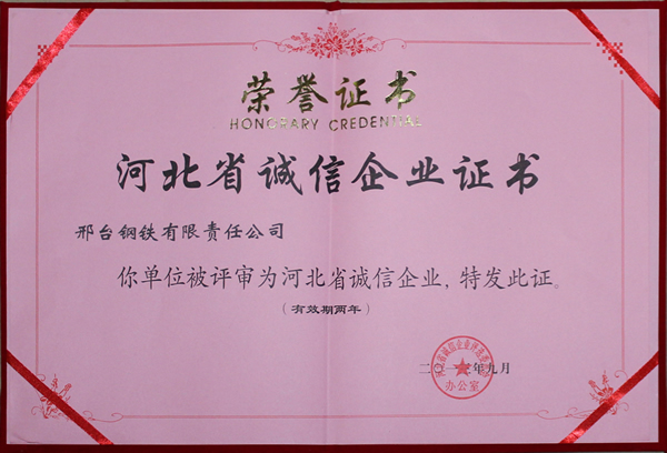 2013年9月,邢鋼被評選為“河北省誠信企業(yè)”。