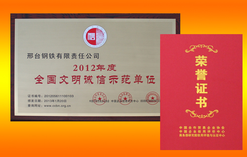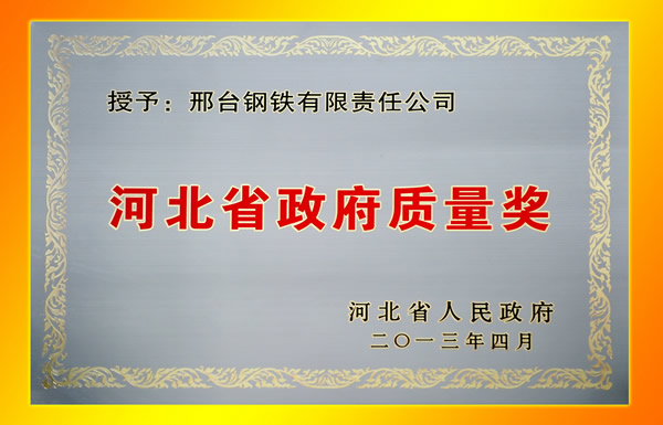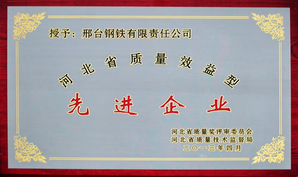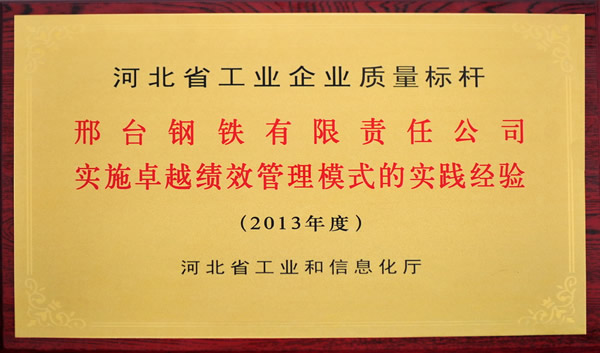 2013年7月12日,省工信廳在石家莊召開了2013年第五期國家新型工業(yè)化產(chǎn)業(yè)示范基地質量標桿經(jīng)驗交流會,會上舉行了省質量標桿授牌儀式,邢鋼公司參加會議并接受了授牌。