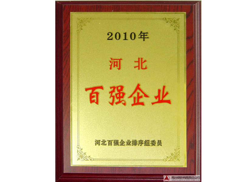 2011年2月17日,邢鋼榮獲2010年“河北省百強(qiáng)企業(yè)”榮譽稱號。