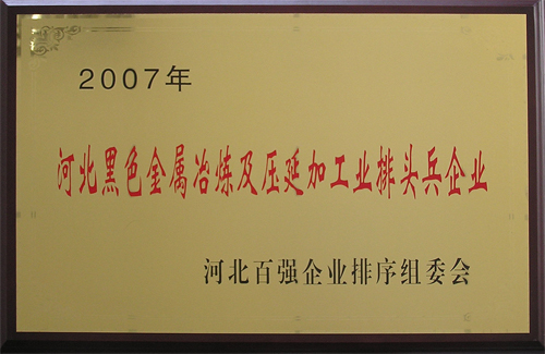 2007年12月,邢鋼獲“河北黑色金屬冶煉及壓延加工業(yè)排頭兵企業(yè)”榮譽稱號。