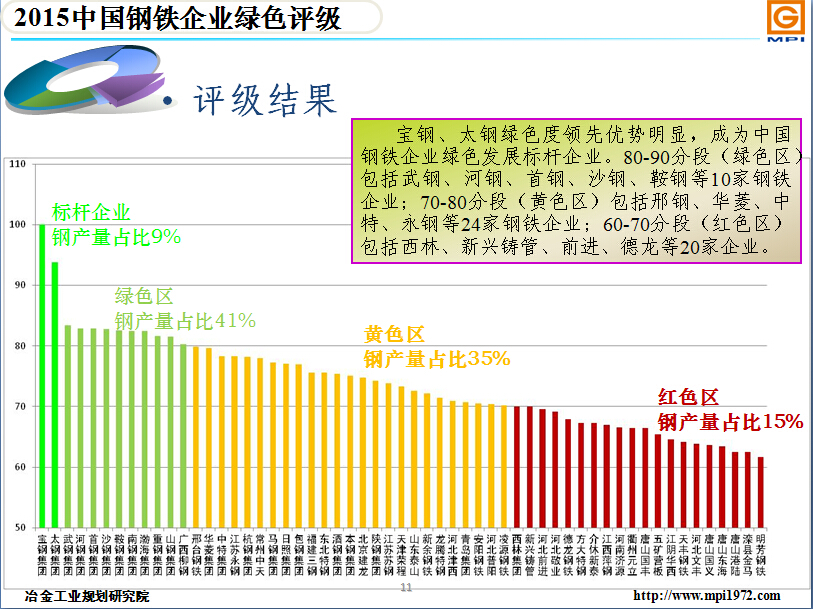 日前,冶金工業(yè)規(guī)劃研究院、環(huán)境保護部環(huán)境工程評估中心聯(lián)合公布2015年中國鋼鐵企業(yè)綠色評級結(jié)果,邢臺鋼鐵有限責任公司位列第13名。