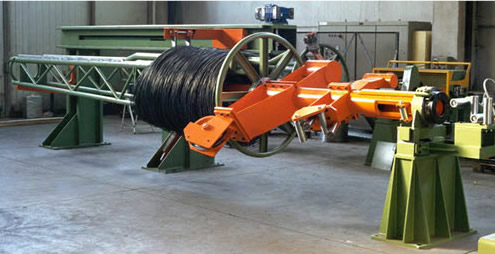 1、推進(jìn)裝置將盤條推進(jìn)至工作位置,經(jīng)放線機(jī)后進(jìn)入到同步裝置,同步裝置的滑輪可以累積大約2米的盤條,用于在萬一發(fā)生纏繞時停止生產(chǎn)線。