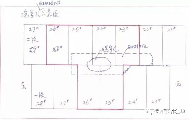 燒穿位置在3-4段冷卻壁之間,32-33號風口下方,距離1號鐵口左側(cè)1800㎜左右。偏下方800 ㎜。爐缸無冷卻壁,冷卻方式為爐皮外加冷卻水套,總水量450立。