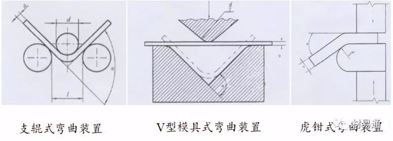 彎曲試驗通常在萬能材料試驗機(jī)或壓力機(jī)上進(jìn)行;常用的彎曲裝置有支輥式、V型模具式、虎鉗式、板式等。