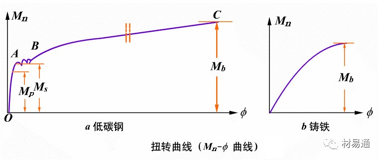 根據(jù)材料性能的不同,扭轉(zhuǎn)曲線可以分為兩種典型——低碳鋼和鑄鐵。