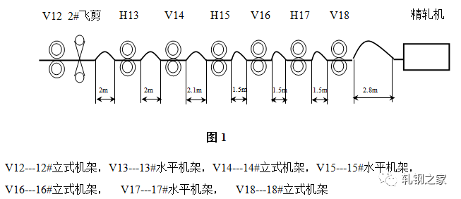 為了保證高速、穩(wěn)定地生產,設計者在軋線共設置了七個活套裝置:兩個水平活套(在14#--15#機架間,18#--19#機架間)和五個立活套。布置情況及活套跨距如(圖1)所示。至于活套掃描器與活套臺的距離A,要根據活套的套量偏差H以及活套檢測角度α進行初始調整及校準。注意活套掃描器安裝位置不同,會影響到測得的實際值。其一般計算公式為A=H/(2×tgα/2)。在軋制某些規(guī)格時,有些活套可以不選用,那么此活套的控制不起作用,即起套輥不動作。