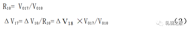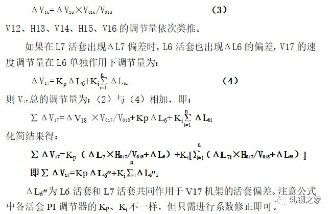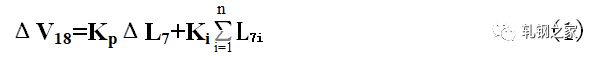 當活套一旦形成以后,活套的實際高度立即由活套掃描器測得的值經過PI調節(jié)器,輸出一個控制信號,通過控制上游軋機,使活套大小得到調節(jié),使活套保持在設定的高度范圍。速度調節(jié)量是按逆流調速的方法,按同樣比例對軋機的工作速度進行級聯(lián)調節(jié)。假如活套L7出現(xiàn)高度差為ΔL7,則V18機架的速度調節(jié)是: