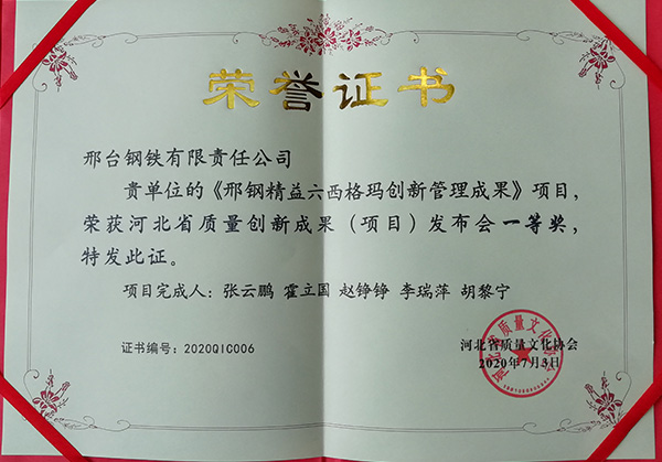 為激發(fā)萬眾創(chuàng)新熱情,提高創(chuàng)新質(zhì)量,促進(jìn)創(chuàng)新交流,河北省質(zhì)量文化協(xié)會(huì)于2020年7 月2日至3日在石家莊召開了河北省第三屆質(zhì)量創(chuàng)新成果(項(xiàng)目)發(fā)布會(huì)。經(jīng)申報(bào)材料評審,大會(huì)發(fā)表,專家評審,邢臺(tái)鋼鐵有限責(zé)任公司申報(bào)的4項(xiàng)質(zhì)量創(chuàng)新成果(項(xiàng)目)全部獲獎(jiǎng)。