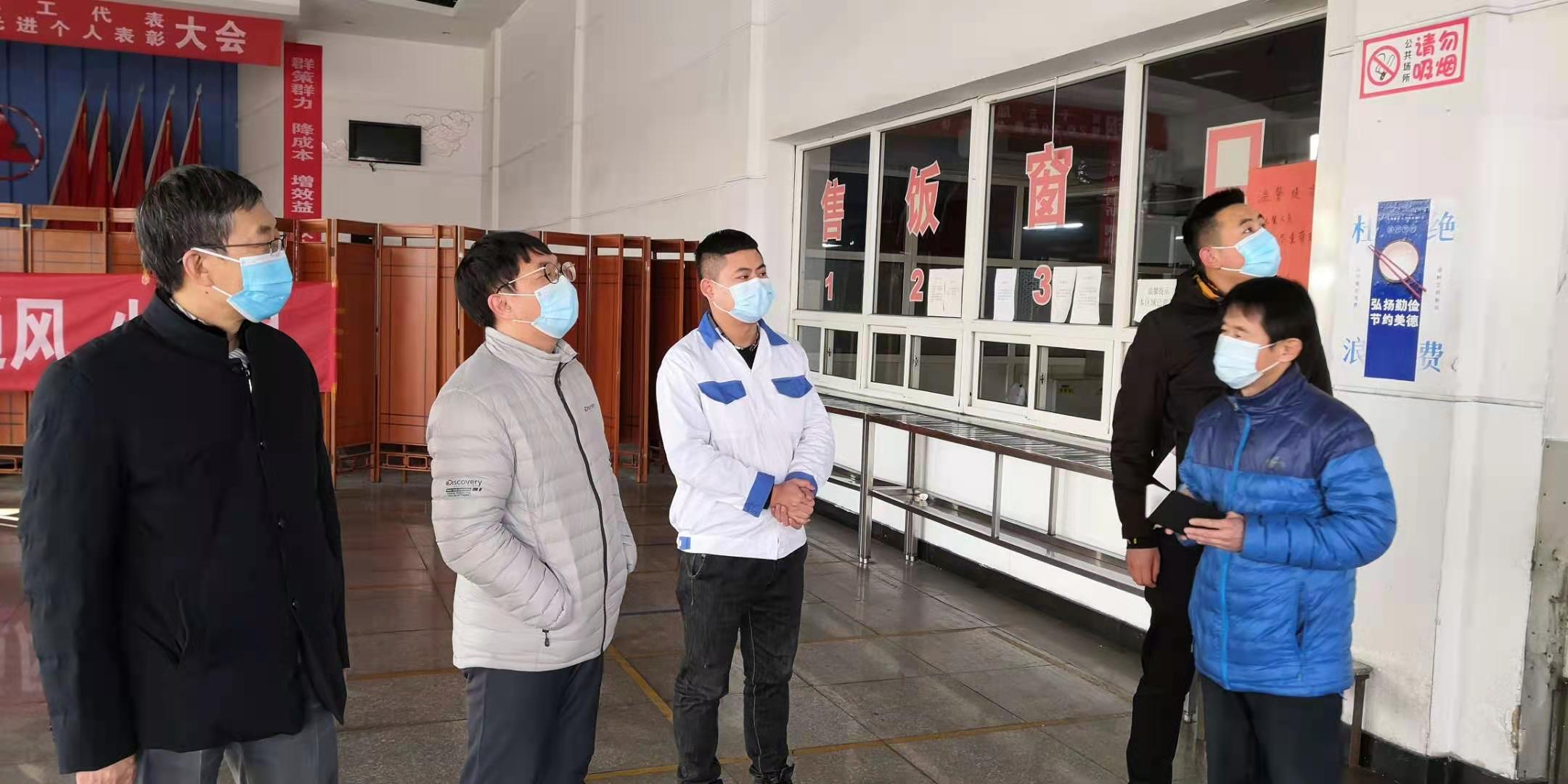 強化使命擔當, 筑牢疫情防控強大防線,發(fā)揮黨組織戰(zhàn)斗堡壘作用和黨員模范作用。1月5日下午,黨委書記王春雨帶領(lǐng)公司疫情防控辦公室成員,先后深入眾鑫食堂、公司各大門,檢查疫情防控工作落實情況。要求食堂嚴密防控傳染源,最大限度降低交叉?zhèn)魅撅L險,規(guī)范衛(wèi)生管理和清洗消毒,讓職工吃得安全、放心;在公司各大門崗位,防控組認真查看了進入人員登記檢查情況和體溫儀、消毒器具的配備使用情況。