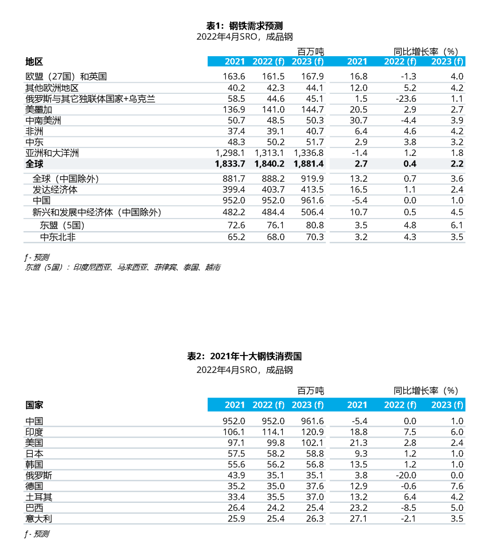 2023年全球鋼鐵需求預(yù)測(cè)具有高度不確定性。我們預(yù)測(cè)的前提,是俄烏雙方在烏克蘭的對(duì)峙將在2022年內(nèi)走向終結(jié),但對(duì)俄羅斯的制裁很大程度上仍將維持不變。