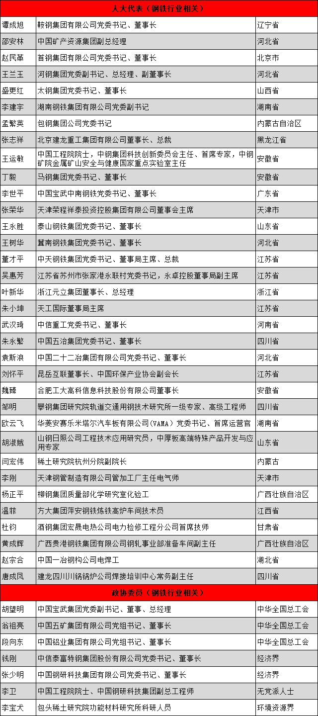 三月春風吹神州,又是一年兩會時。今年的兩會,正值二十大的開局之年,也恰逢換屆之年,對新階段全面推進中國式現(xiàn)代化發(fā)展有著重要的導向作用。而在新一屆的人大代表中,依然有一批來自各領域、各行業(yè)、各崗位的代表和委員們?yōu)樾袠I(yè)發(fā)聲,為民眾請愿。在這其中,不乏一些鋼鐵行業(yè)的委員和代表。我們來看看他們都帶來了哪些建議和提案吧!
