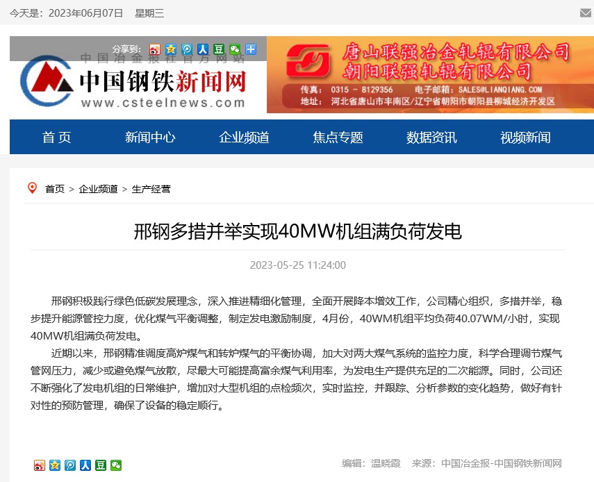 邢鋼多措并舉實(shí)現(xiàn)40MW機(jī)組滿負(fù)荷發(fā)電