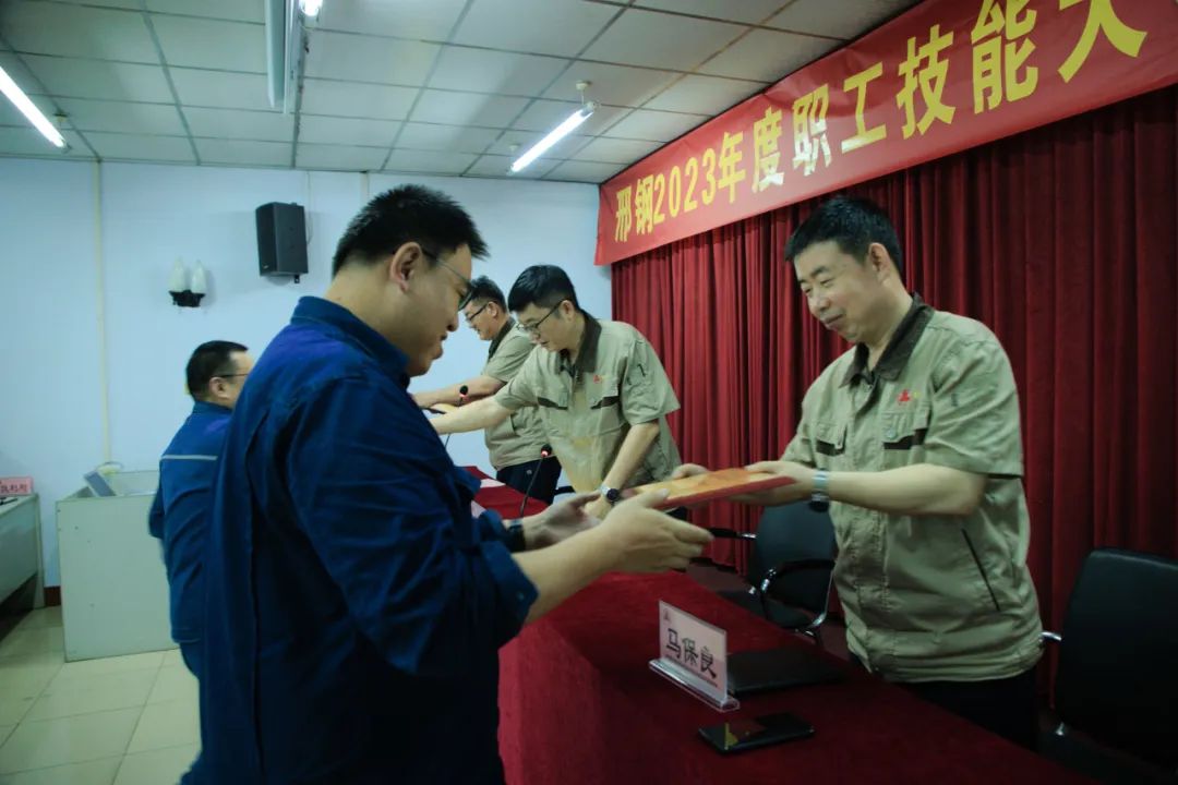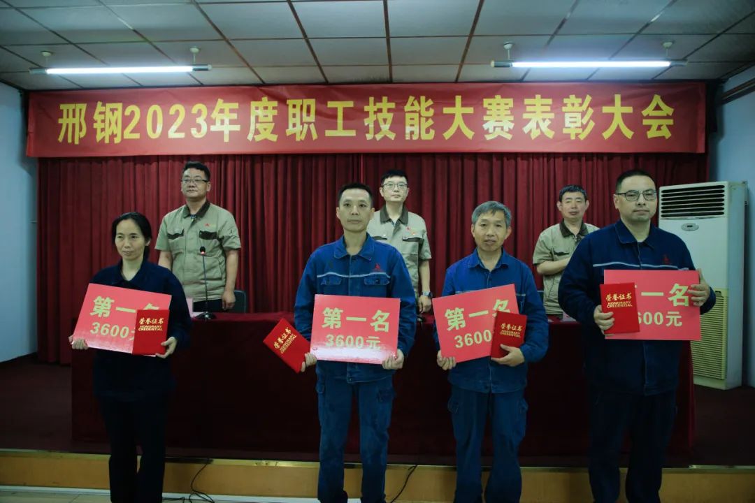 近日,邢臺鋼鐵有限責任公司在線材廠召開“2023年度職工技能比武大賽表彰會”,對取得優(yōu)異成績、表現(xiàn)突出的先進個人和集體進行表彰。公司總經理彭世丹、副總經理馬保良、韓清連為獲獎選手頒發(fā)榮譽證書并致賀。