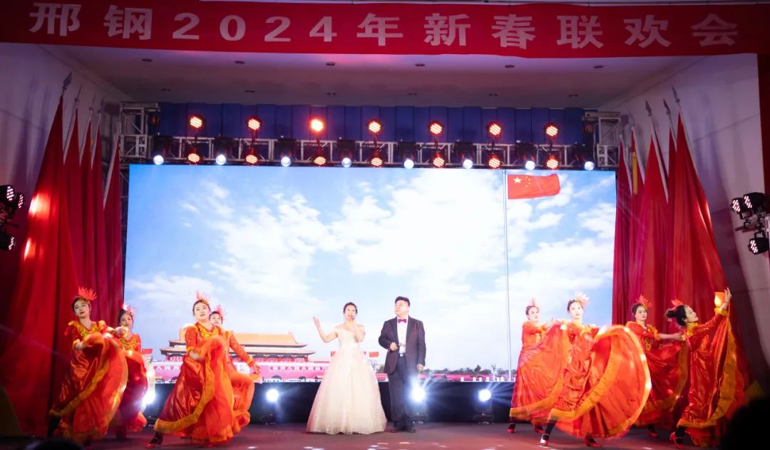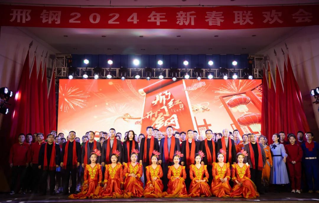 在聯(lián)歡會(huì)上,張育明董事長發(fā)表了熱情洋溢的致辭,代表公司、公司黨委向全體員工致以新春祝福。他說,2023年,在邢臺市委、市政府的指導(dǎo)、支持下,邢鋼完成股權(quán)重組,各二級單位以“保質(zhì)、提產(chǎn)、降本”為主線,精誠協(xié)作,創(chuàng)新管理,堅(jiān)定實(shí)施“精品戰(zhàn)略”;廣大員工自覺踐行“誠信、擔(dān)當(dāng)、實(shí)干、創(chuàng)新、聚力、共贏”核心價(jià)值觀,愛崗敬業(yè),努力拼搏,為邢鋼健康運(yùn)營做出了積極貢獻(xiàn);邢鋼轉(zhuǎn)型升級搬遷改造項(xiàng)目順利奠基,項(xiàng)目建設(shè)穩(wěn)步推進(jìn),新邢鋼已從藍(lán)圖走向現(xiàn)實(shí)。2024年,要一手抓老廠區(qū)的安全生產(chǎn)和經(jīng)營,維護(hù)好邢鋼品牌;一手抓新邢鋼建設(shè),全力以赴推進(jìn)高標(biāo)準(zhǔn)、高質(zhì)量、高效率施工,確保一期項(xiàng)目按計(jì)劃竣工投產(chǎn),把新邢鋼建成“開放、智慧、綠色、靈動(dòng)、融合”的世界一流特鋼標(biāo)桿企業(yè)。