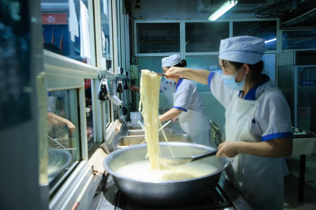 經(jīng)濟(jì)實(shí)惠。食堂以低于成本的價(jià)格向職工提供三餐,午餐中三肉兩素5元能吃飽吃好,鹵雞腿4元1個(gè),獅子頭2元1個(gè),黃燜雞塊、紅燒帶魚(yú)等5元1份,面條/饸饹面2.5元1份;早餐、晚餐2元能吃飽吃好,雞蛋0.5元1個(gè),手抓餅1元1個(gè),雞蛋灌餅含1雞蛋1.5元1個(gè),肉夾饃3元1個(gè)。