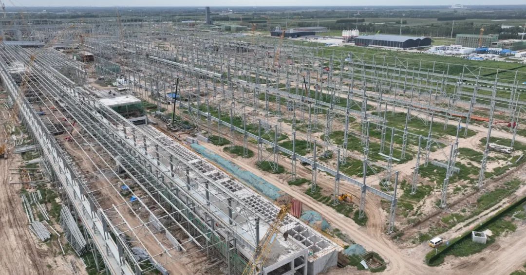 工程車來回穿梭的車轍印、大型機械的轟鳴聲、矗立的鋼結(jié)構(gòu)和封頂?shù)慕ㄖ黧w、塔吊揮舞著長臂加緊為建設(shè)者運送物資……日前,位于威縣高新區(qū)的邢臺鋼鐵有限責(zé)任公司搬遷升級項目(以下簡稱“邢鋼搬遷升級項目”)正在有序緊張施工中,2000余名工人分布在各個作業(yè)面,項目已全面進入地上鋼結(jié)構(gòu)及主線設(shè)備基礎(chǔ)施工階段,項目一期預(yù)計今年年底建成投產(chǎn)。