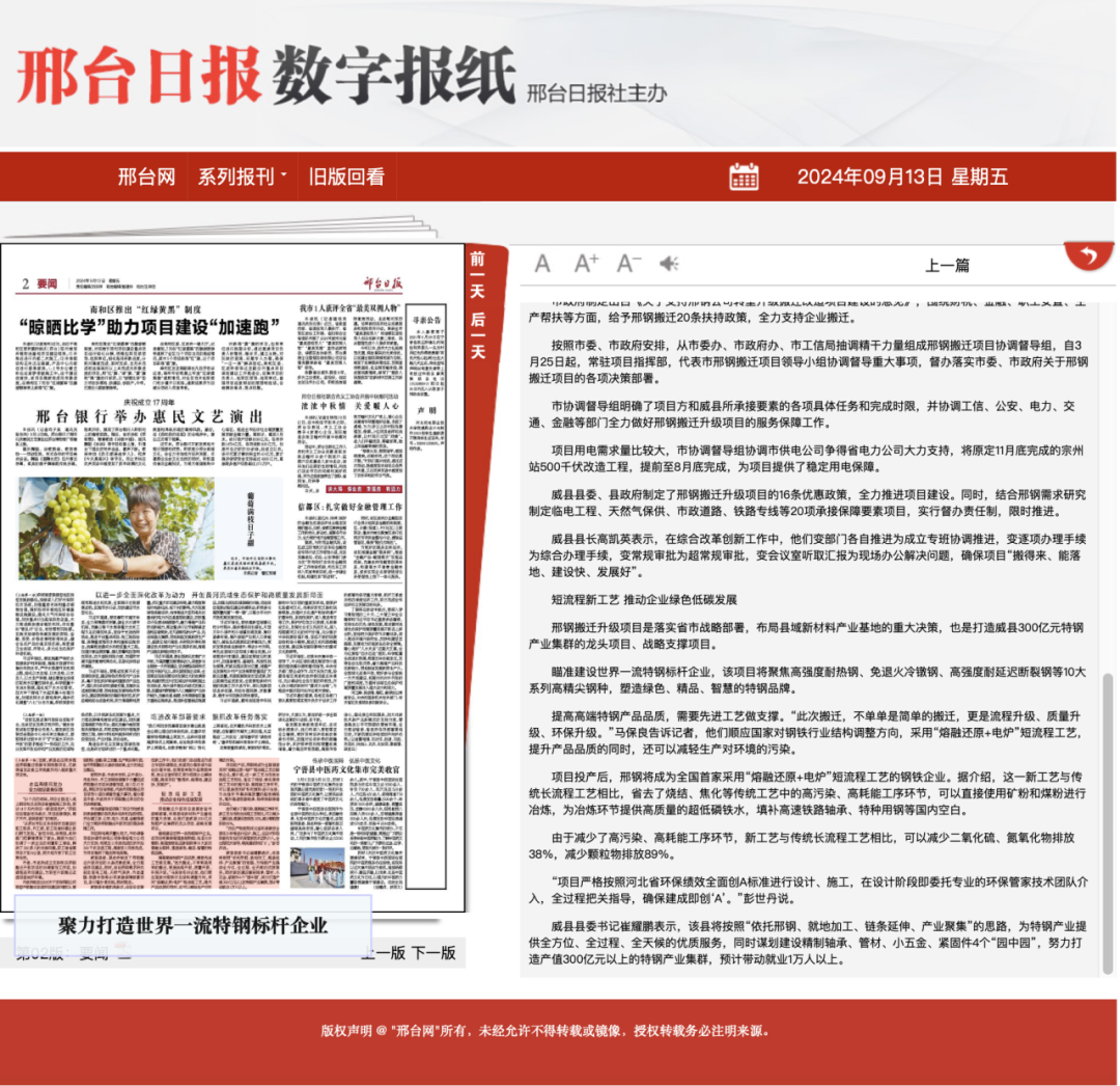 邢臺日報:邢鋼搬遷升級項目一期預(yù)計今年年底建成投產(chǎn)