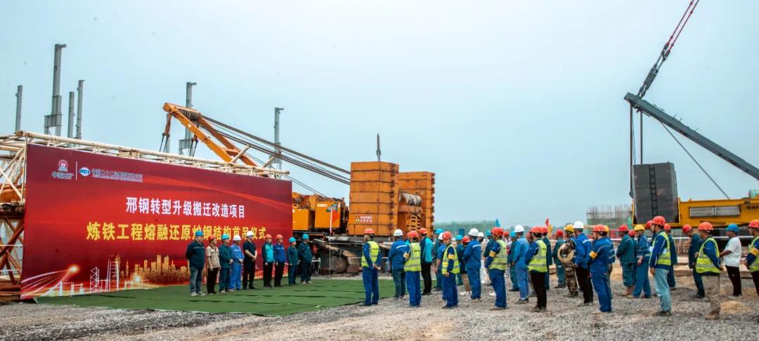 On July 8, the ironmaking zone of Xingtai Steel's relocation and transformation project witnessed a historic moment as the 46-ton steel baseplate of the smelting reduction furnace was successfully installed. The ceremony, attended by Chairman Zhang Yuming, General Manager Peng Shidan, Vice Presidents Ma Baoliang, Liu Wanchao, and Han Qinglian, along with project leaders, marked the official commencement of the furnace installation phase - a significant step in the company's green transformation strategy.