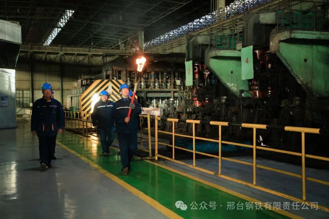 8時08分,象征邢鋼“求精、求細、求實”企業(yè)精神的老廠火種,在線材廠五線車間成功采集。隨后,火種由線材廠廠長孔令波乘車護送至百公里外的新廠區(qū),完成火種傳遞。11時08分,邢鋼黨委書記、董事長張育明親手點燃了烘爐的火把,隨著爐中火焰熊熊燃起,邢鋼軋鋼大盤卷加熱爐“點火”成功。